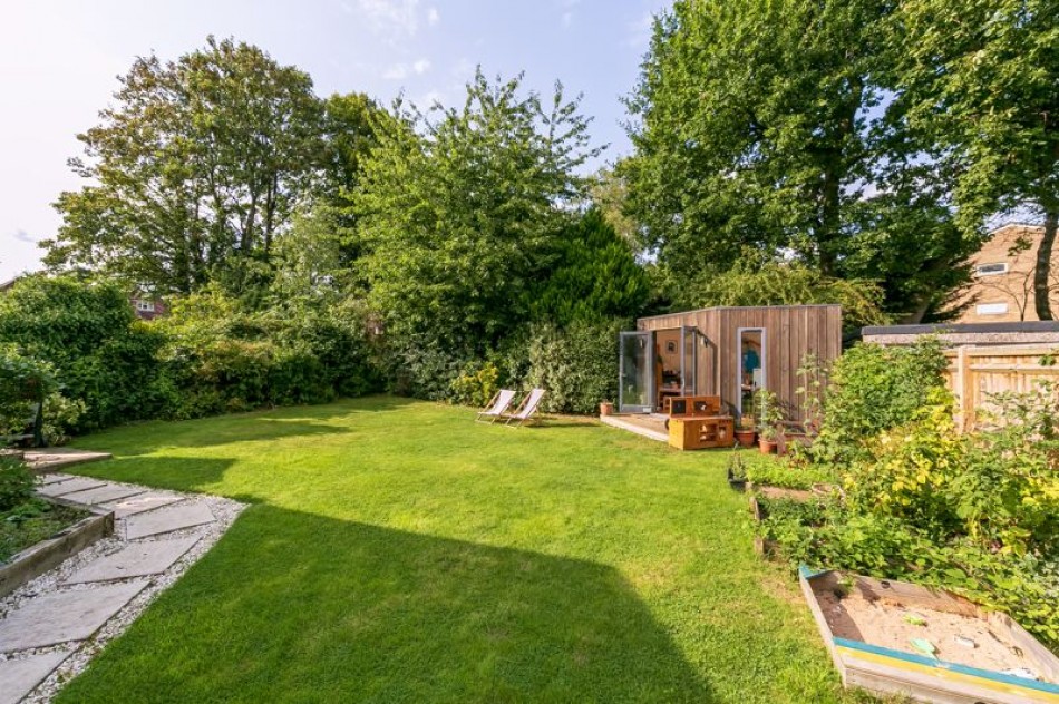 We feel this property boasts a unique offering with its secluded corner position tucked away at the end of a quiet cul-de-sac. It is arguably the best plot enjoying a sizeable private garden (approx. 59ft x 47ft / 18m x 14.5m) considerably bigger than many houses in this price range - with additional land to the side lending itself to further extension potential (stpp). One of the main features of the garden is the overall privacy and seclusion both in the garden itself and looking out from the property with a natural screening of trees beyond. The garden has been landscaped with a large lawn and planted extensively with both perennial and annual plants, shrubs and flowers. The garden office has power and ethernet (phone/internet) connection. This would also make a nice writing/artists studio or perhaps a comfortable treatment space for a small home business.